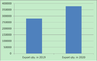 Exportar Cantidad. En 2019: 280051pcs Export Qty. En 2020: 378385pcs, tasa de aumento: 35.11%